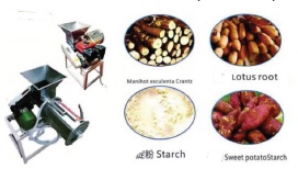 This machine is used for starch production of sweet potato, kudzu root, cassava and lotus root can separate the residue and starch slurry in one step